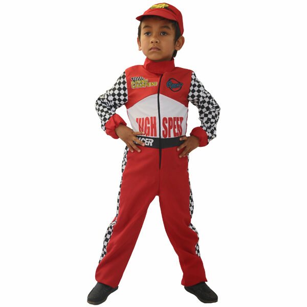 Cette combinaison de pilote de course est réalisée dans une matière imitant à merveille les tissus utilisés sur les circuits. L’imprimé à damier ainsi que les différents logos et patchs brodés rendent encore plus réaliste ce costume de pilote. Une casquette décorée d’un logo complète ce déguisement.